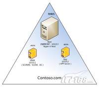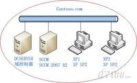 我们在之前的文章中(1,2)已经完成了SCCM 2007 R2的服务器部属,接下来我们就要进入实质性的操作阶段。我们准备了两台客户机,如下图所示,两台客户机分别是XP1和XP2,都是Windows XP操作系统。我们准备利用这这个实验环境为大家演示如何用SCCM 2007 R2在客户机上实现软件分发,补丁更新,远程控制,操作系统部属等功能。当然,我们首先要在本文中实现对SCCM主站点的配置,然后在客户机上安装SCCM客户端软件,这样才可以进行后续的操作。